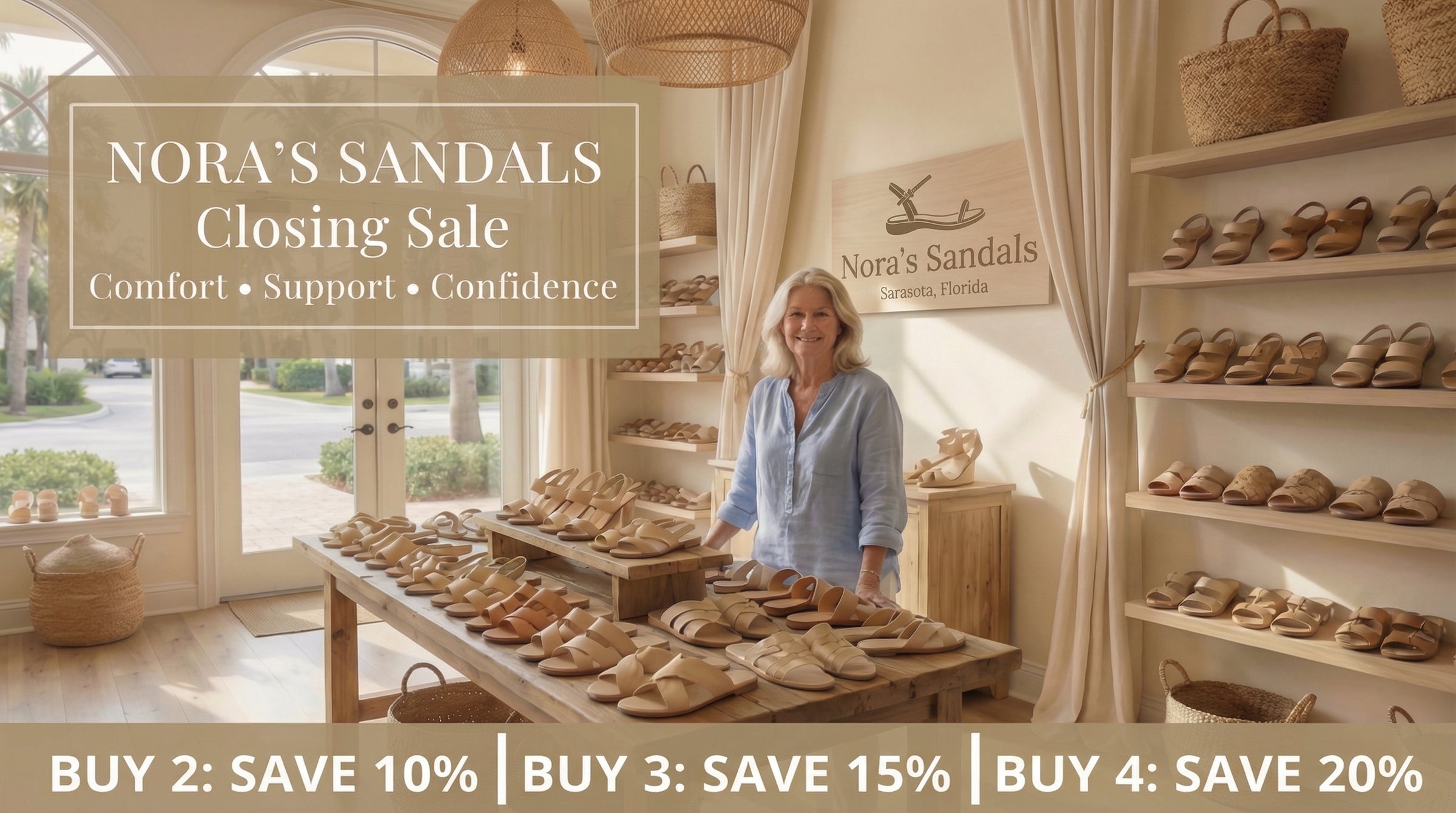 For more than thirty years, I’ve helped women find sandals that feel as comfortable as they look. As I prepare to retire and close my boutique in Sarasota, I wanted to give my customers one last chance to enjoy the collection.